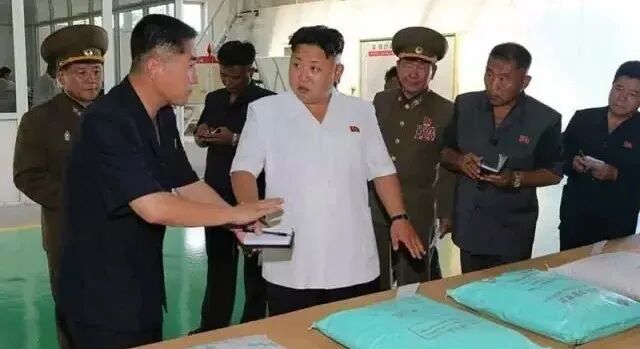 图四、金三胖同志到朝鲜千里马瓷砖厂指导瓷砖胶的生产工作。