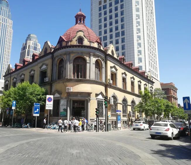 1895年,华俄道胜银行天津分行在五大道矗立起来,这是中国第一家用瓷砖做外饰面的建筑。当时的大清帝国已经是风雨飘摇之中,沙俄在“遥望神京”的天津卫用皇帝专用的明黄色,此等僭越之事莫说在康乾年间,就是倒退30年也是无法想象的。